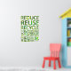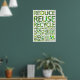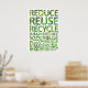 Um abstrato de várias linhas e formas interessantes em vários tons de verde compõe as letras desta mensagem, Reduce Reuse Reciclar. Esta é uma poster excelente para expressar seu amor pelo meio ambiente e espalhar a mensagem para os outros.