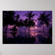 Esta foto mostra uma fileira de palmeiras refletindo em uma praia tropical no Sunrise.