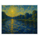 Este trabalho captura a beleza tranquila, mas dinâmica, de um rio ao amanhecer, reimaginada através da lente expressiva do estilo de assinatura de Vincent van Gogh. A cena está viva com movimento — os pequenos misturadores de corrente à luz do ouro, enquanto o céu acima se transforma do índio profundo para o coral quente. Traços de pincel giratórios criam uma harmonia rítmica entre água e céu, evocando a magia silenciosa de um novo dia se desdobrando.
