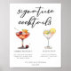 Este poster de cardápio de coquetéis de assinaturas refrescantes e frutíferas apresenta uma simples tipografia negra acima de 2 bebidas e seus ingredientes para seu bar de casamento. Um belo desenho de Cherry French 75 e Lemon Drop adiciona um talento legal ao seu menu de bar. Preencha com os nomes dos casais e a data para sua recepção.