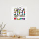 Refugiados design de Boas-vindas mostra pessoas de muitas cores em um grupo de boas-vindas amigável - celebrando a diversidade, novos chegados e assegurando que refugiados e migrantes sejam bem-vindos.