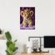 A charming and whimsical portrait of a young lion cub wearing a delicate golden crown, set against a rich purple backdrop. This artwork blends regal symbolism with playful warmth, creating a striking yet endearing piece that brings character and imagination to any space.