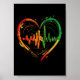 Um coração com dentro de onda de pulsação com cor vermelha, dourada, rasta verde para simbolizar o efeito do reggae no coração