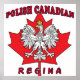 Mostre seu orgulho polonês na sua cidade natal canadense ou na sua cidade natal ancestral. Esta bela design apresenta uma folha vermelha de bordo da bandeira do Canadá com uma sobreposição de águia branca polonesa e as palavras canadense polonês no topo e Regina no fundo.