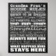 Personalize as regras da casa da sua avó com os nomes que quiser. A linha superior pode ser editada. Possui um fundo de quadro.