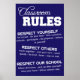 Decorra a sala de aula com este poster de regras ousadas, na moda e populares. Muitos clientes satisfeitos adquiriram este poster. Veja as revisões positivas abaixo! Este é o presente perfeito para os professores, especialmente os novos. Esta poster parecerá fantástica mostrada na sua sala de aula e também apresenta regras práticas e sensatas para os estudantes seguirem. Este poster apresenta texto branco em negrito sobre um fundo azul escuro sólido. Este poster está disponível em vários tipos de papel e em vários tamanhos para atender às suas necessidades. Não é professor? Como já foi dito, esta poster poderia fazer um presente fabuloso para seus amigos que são professores, novos professores, etc.! Os posters Zazzle são de qualidade de excelente, por isso sei que ficará satisfeito com a sua compra. Enquadre o poster para fazer com que pareça ainda mais agradável enquanto é exibido. Sinta-se à vontade para compartilhar este produto com seus amigos nas mídias sociais. Por favor, envie-me uma mensagem através do Zazzle se tiver alguma dúvida ou preocupação relativamente à design deste produto.