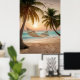 Relaxando Hammock em uma Praia, esta design apresenta um pôr do sol maravilhoso com palmeiras e um Hammock Relaxante em uma Praia.