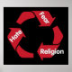 Símbolo de reciclar mostra como o ódio leva ao medo e o medo leva à religião e religião leva ao ódio. É um ciclo vicioso de significação que só pode ser quebrado aprendendo a pensar por si mesmo.