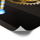 Marcações antigas com engrenagens de ouro e latão, decoradas com libélula mecânica sobre fundo castanho e listrado. Steampunk.
