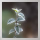 galho com folhas verdes compridas pela geada