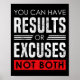 Poster Results Or Excuses - Motivational Bodybuilding Quo