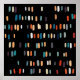 Um padrão de retângulos irregulares em um esquema de cor de laranja, vermelho, marfim, taruga, cinza, berinjela e preto.