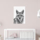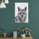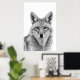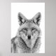 Poster Retrato da Cabeça de um Coyote Preto e Branco
