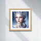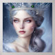 Bonito Rainha de inverno com uma adorada coroa prateada em cabelos prateados - uma imagem fantástica criada com o software de renderização AI. Impresso neste poster quadrado, perfeito para o quarto infantil.
