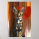 Essa pintura digital encantadora apresenta um gato-mesa cativante com olhos grandes e expressivos e detalhamento intrincado de pelo. O fundo é uma rica mistura de pinceladas cor de laranja quente e marrom, destacada com um coração vermelho ousado, acrescentando um elemento de amor e capricho. As listras verticais artísticas dão à peça um toque moderno, pareado, perfeito para amantes de gatos e entusiastas da arte. Ideal para arte de parede, cartões de saudação ou qualquer produto onde um toque de encanto felino encontra design contemporâneo.