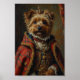Um encantador retrato real apresentando o espirituoso Cairn Terrier retratado como um nobre escocês. Inspirado em pinturas a óleo clássicas, o design destaca a pelagem distintamente áspera da raça e a personalidade animada com trajes elegantes de tartan e detalhes reais.