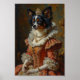 Um elegante retrato real apresentando o gracioso Papillon retratado como uma princesa francesa. Inspirado em pinturas a óleo clássicas europeias, o design destaca as orelhas icônicas de borboleta da raça e o pelo sedoso com trajes reais luxuosos e tiara de joias.