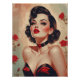 Pôster Retrato Rosa vermelha Pin-Up Brunette