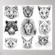 Retratos desenhados à mão de animais isolados em fundo branco. Ilustração Vintage. Coleção de esboços de animais! Retratos do estilo Vintage de criaturas majestosas. Uma coleção de retratos de animais desenhados à mão num estilo vintage. Simplesmente adorável! Pantera, leoa, desenho, tigre, vintage, cabeça, ilustração, desenho, fundo, padrão, natureza, neve, poster, animal, rosto, leão, tatuagem, china, áfrica, set