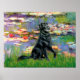 Lírios d'água do impressionista Claude Monet (1914), adaptado para incluir um Retriever Revestido Plano. Uma das muitas pinturas de lírios-d'água, esta tem lírios vermelhos ou rosa-claro na lagoa. Vendeu em leilão em 2008 por mais de 70 milhões.