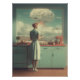 A striking surreal artwork blending 1950s nostalgia with atomic-age tension. A vintage housewife calmly decorates cupcakes in a pastel kitchen as a massive explosion unfolds outside. This bold, cinematic image contrasts domestic tranquility with apocalyptic chaos—perfect for lovers of retro, sci-fi, and thought-provoking art.