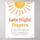 Torne o seu evento especial com este Chá de fraldas Sol Retroativo com o nosso lindo e adorável Sinal de Fraldas Noturnas Tardias com um adorável Tema Vem o Chá de fraldas Filho. Baixe, personalize e crie memórias duradouras com este toque perfeito para sua celebração alegre! BS640
