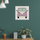 Este poster de diversão apresenta um ônibus de camper retrô antigo em tons suaves de rosa e creme. Uma adição bonita a qualquer berçário.