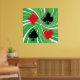 Brighten up any room with this bold poster showcasing striking red and black card suits over a vivid green spiral backdrop. The dynamic, retro-inspired artwork makes it perfect for game rooms, bedrooms, entertainment spaces, or themed decor. Printed with sharp detail and rich color, this poster adds a fun and energetic touch to walls while celebrating classic card imagery with a modern graphic twist. Customizable and ideal for fans of casino style, playful art, or vibrant statement pieces.