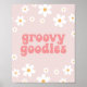 Poster Retro Daisy Pink Boho Groovy Goodies - Sinal do Pa