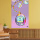 The background is a soft, pink gradient, decorated with iridescent floating bubbles and glossy star-shaped elements, giving it a magical, cosmic feel. The combination of soft pastel hues, reflective surfaces, and playful retro nostalgia creates a whimsical and surreal atmosphere, evoking both childhood memories and futuristic fantasy.