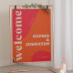 Stylish vibrant colorful red, orange terracotta, and beige retro 70s funky modern wedding welcome sign printable poster. Digital download available.