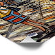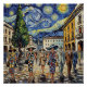 This image merges a busy, fashionable city street scene, populated by figures in chic geometric patterns, with a dramatically rendered, swirling night sky reminiscent of Van Gogh's Starry Night.