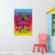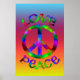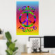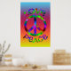 Volte atrás com este design de poster que lembra os dias hippies nos anos 60 e 70. Um símbolo de paz com LOVE acima e PEACE abaixo é preenchido com um padrão tingido e está em um plano de gradação de coordenação.