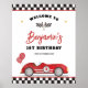 Poster Retro Red Race Car Fast Um Aniversário Bem-vindo
