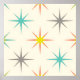 Ignite nostalgic vibes with this playful retro starburst pattern that channels pure mid-century modern magic. Bold atomic stars in varying sizes burst with energy in vibrant teal, sunny yellow, coral orange, cool gray, and soft lime, featuring subtle gradient centers for added depth and movement on a clean off-white background. The iconic 1950s-60s design brings joyful, cosmic flair and timeless optimism.