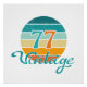 Retro vintage style sunset with 77 (1977) typography center in the style of the 1970s and Vintage in a scripted typographic design below in a distressed effect.