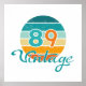 Retro vintage style sunset with 89 (1989) typography center in the style of the 1980s and Vintage in a scripted typographic design below in a distressed effect.