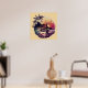 Esta poster é perfeita para um surfista. Está no estilo retrô, apresentando uma cena de praia no pôr do sol de um surfista com pranchas de surfe em primeiro plano. O texto na prancha é personalizável com seu próprio nome, nome ou pode ser deixado como está.