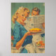 Uma dona de casa alegre dos anos 1950 apresenta uma deliciosa torta enquanto seu marido lê o jornal, capturando o clássico americanismo do meio do século com um charme vibrante e vintage. Ideal para cartões de saudação nostálgicos.