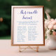 Este elegante letreiro memorial de reunião de escola branco e azul é uma maneira bonita de lembrar aqueles colegas de classe que partiram, mas sempre serão lembrados.
