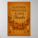 Traga calor para sua casa com este poster de Ação de Graças "Junte-se e Dê Obrigados". Apresentando uma tipografia elegante com abóboras, folhas de outono, trigo e velas sobre um fundo laranja macio queimado, esta aconchegante design de outono adiciona um toque de gratidão e charme a qualquer espaço. Perfeito para reuniões de Ação de Graças ou decoração sazonal.