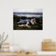 Poster Reverioso (Garota deitada na grama com seu cachorr