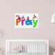 Uma bela ilustração cartoon de meninos e meninas felizes e diversos escalando em letras gigantes do alfabeto que soletra a palavra PRAY. Imagem disponível em vários presentes e produtos. Posters. Impressões.