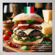 Experimente uma rapsódia romana de sabores com esta sensacional Truffle Burger Italiana. Um pedaço de carne suculento inundado de óleo de trufa preto rico é tocado com mozzarella fresco cremoso, tomate seco vibrante e pesto de manjericão perfumado, todos aninhados dentro de um rolo de ciabatta torrado. Uma bandeira italiana em miniatura acrescenta um toque de talento italiano, enquanto um pano de fundo de parmesão velho e uma garrafa de Chianti completa esta autêntica criação culinária italiana.