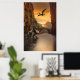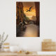 O Tricerátopo está perto do rio, o Velociraptor está perto de atravessar uma ponte de pedra e o Pterodátilo sobrevoa enquanto o sol desce Estes Dinossauros não estão lutando, apenas pendurados no mesmo ravino ao pôr do sol. Este poster de três dinossauros populares do período Cretáceo está disponível em muitos tamanhos e preços, assim como em um download digital.