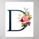 As flores bonitas e ricos incluem folhas de ouro, rosa púrpura e flores silvestres azuis em letras grandes / iniciais D.
