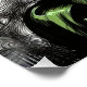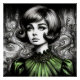 um retrato estilizado, inspirado na década de 1950, de uma jovem vestida com um vestido verde de manga feia