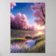 Em meio a uma paisagem tranquila, um rio pacífico flui suavemente, enfeitado com belíssimas flores roxas e sakura árvores. À medida que o sol se põe no horizonte, desdobra-se uma cena respiratória, onde a serenidade da natureza converge com a beleza etérea da sakura florescente, lançando uma aura cativante de tranquilidade.