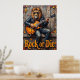 Este trabalho de arte dinâmico retrata um leão, olhando facilmente legal em óculos de sol e uma jaqueta de couro, "raspando" magistralmente um violão elétrico enquanto assentava sobre uma borda de madeira vestida. O pano de fundo é uma parede de madeira com textura rica, adornada com folhas de outono dispersas. O espesso e expressivo impacto que cria uma textura tangível, fazer da declaração "Rock or Die", ressoa com a energia bruta do desempenho.