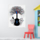 Ritmos do Coração mantêm o tempo... música fluindo... interna. externa. Soa a ramificar-se... a inspiração foi preparada para voar. Esta design apresenta a silhueta de uma guitarra acústica com uma clave trivial pregada no corpo da guitarra, um corvo batendo uma nota musical, e nosso metrônomo interno - o coração humano, ramificando-se como uma Árvore Celta dos membros e raízes da Vida, com detalhes de cores das veias como num sistema circulatório que ressoa o ritmo da vida. Parte um da série "Ritmo Natural, Raízes Musicais".